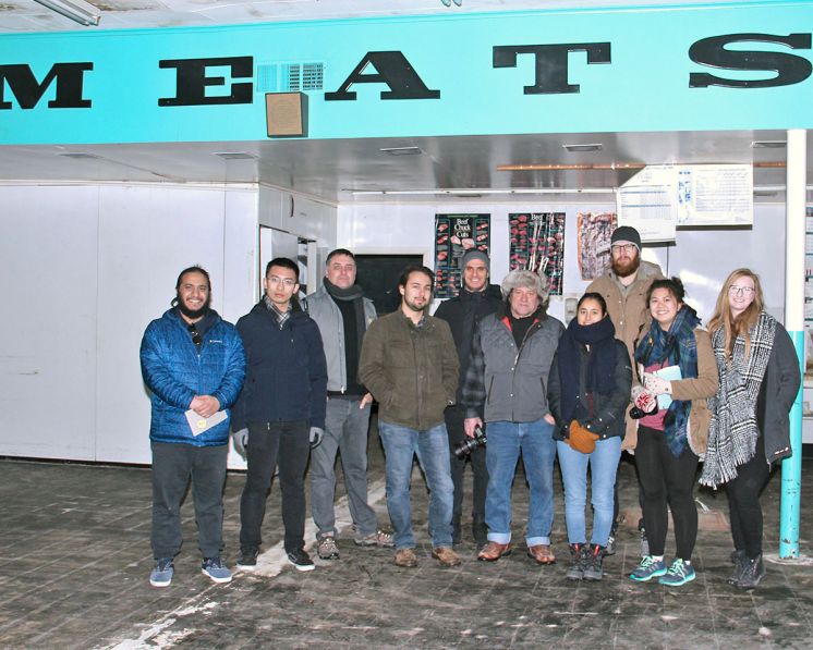 University of Nebraska-Lincoln graduate students visit the Rushville grocery store on N. Main St. as they work with Melvin Ziegler of the Sandhills Institute to create an art gallery and cultural center.